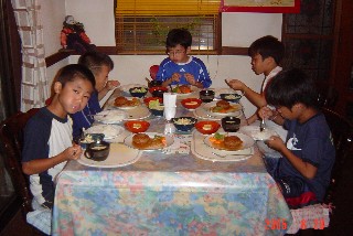 | 食事の量は、全体的に多めだったそうです。 ハンバーグ、鶏肉、サラダ等々何でも食べて 元気いっぱいのサッカー選手になってください。 |